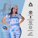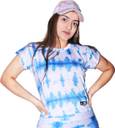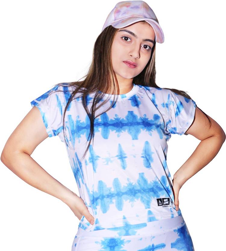 AKIBA Women Chevron/Zig Zag Round Neck Elastane Light Blue T-Shirt