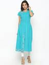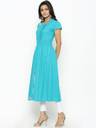 AKIKO Women's Cotton Slub Embroidery Kurta (Teal)