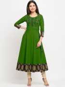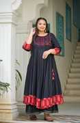 The kurta is made in the classic Anarkali style, characterised by its fit-and-flare silhouette. It features a fitted bodice that gradually flares out from the waist, creating a graceful and feminine shape. This style not only enhances your appearance but also allows for ease of movement, making it comfortable for daily wear and special occasions alike.