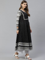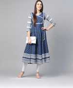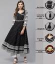 This Anarkali kurta is crafted from pure cotton and is known for its exceptional comfort and breathability. Cotton is a natural fibre that feels soft against the skin, making it suitable for extended wear. It allows air to circulate, ensuring you stay cool and comfortable, even in warmer climates. Cotton's moisture-wicking properties also help to keep you dry, making it an excellent choice for various occasions and weather conditions.