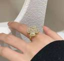 Spinning 4 Leaf Clover Rings Women Rotatable Anti Stress Fidget Spinner Ring Alloy Cubic Zirconia, Crystal Ring