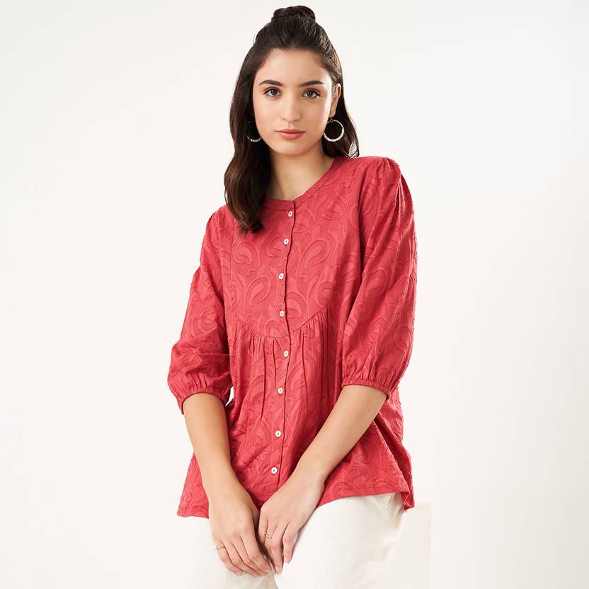 Akkriti by Pantaloons Casual Embroidered Women Red Top