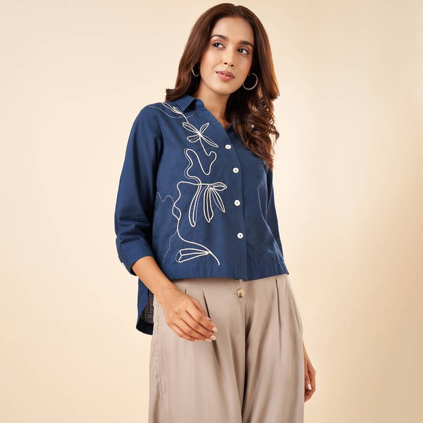 Introduce drama and dazzle into your festive closet. The top has a standard collar with a button placket, cuffed 3/4 sleeves, artistic embroidery and a high-low hemline. Constructed in a premium fabric to give you outstanding breathability and comfort.