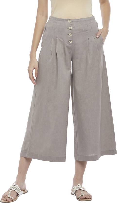 Akkriti by Pantaloons Women Regular Fit Grey Pure Cotton Trousers