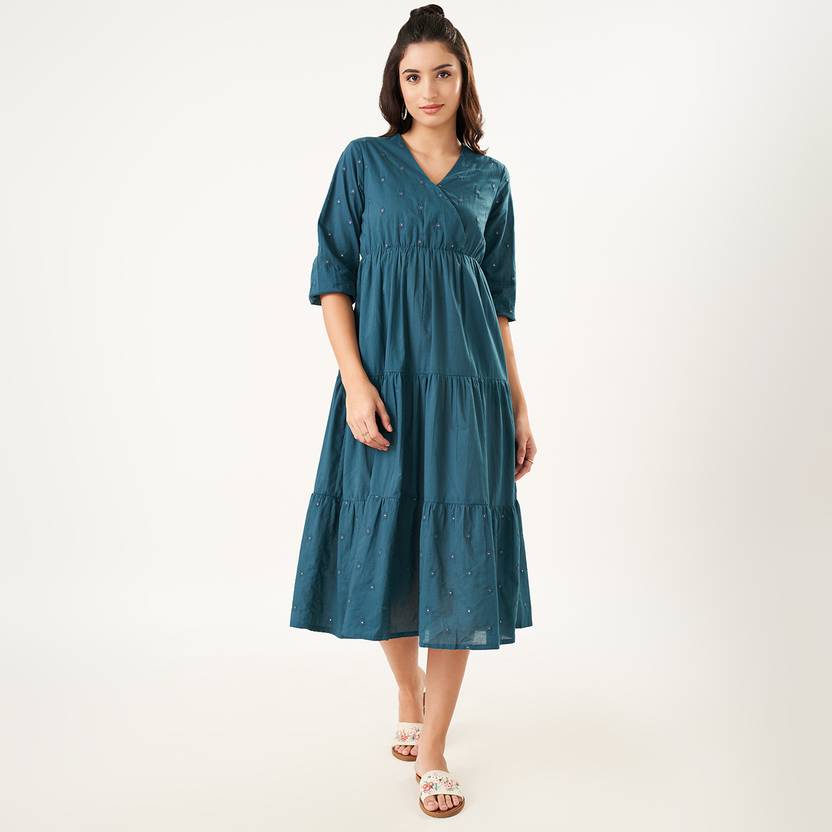 Akkriti by Pantaloons Women Tiered Blue Below Knee Dress