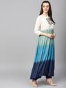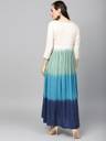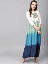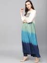 Women Ombre Cotton Blend Flared Kurti (White, Blue)