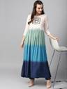 Ace your look by wearing this kurti from Aks Blue Ombre Print pleated Kurta With Embroidered Yoke