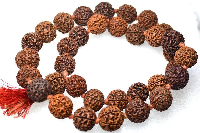 aksaya marketing Natural 7 mukhi rudraksha mala Symbol of Goddess Laxmi with lab Certified / 19-20 mm- 34 Beads + Free Gomukhi for jaap mala+ Free Navgrah Yantra Beads Wood Chain