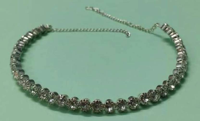 Aksh Enterprises Silver Necklace For Kid Single Line Crystal Gold-plated Plated Alloy Necklace