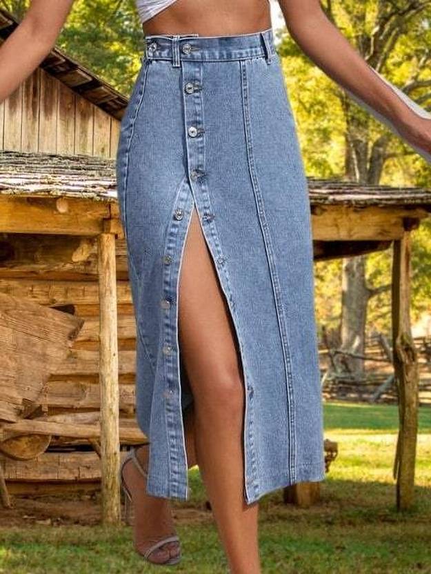 AKSHA CREATION Solid Women Straight Light Blue Skirt