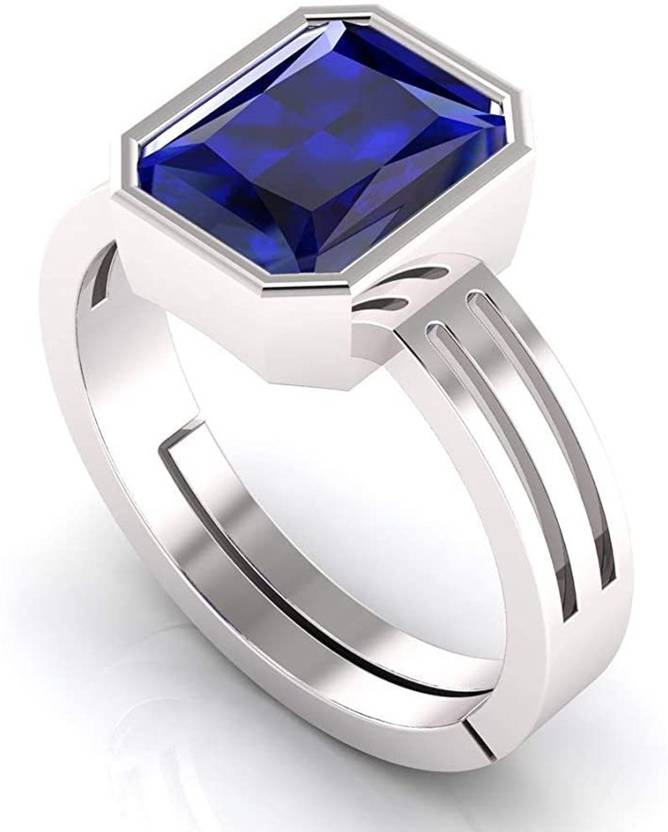7.25 Ratti 6.00 Carat Blue Sapphire Silver Plated Ring Adjustable Neelam Ring