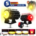 This light has 5 modes – white (6000K) for sunny days, yellow (3000K) for rain or fog, dual beam (white + yellow), flashing mode for alerts, and a cool red eye effect. Its special lens gives a wide and focused beam for better road visibility. It’s waterproof, fits most cars & bikes easily and uses bright, long-lasting, and power-saving LED lights.