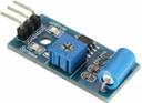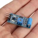 >The Vibration module based on the vibration sensor SW-420 and Comparator LM393 to detect if there is any vibration that beyond the threshold. The threshold can be adjusted by the on-board potentiometer. When this no vibration, this module output logic LOW the signal indicate LED light,And vice versa. Features: Normally closed type vibration sensor SW-420. The comparator output, signal clean, good waveform, driving ability is strong, for more than 15 mA. Has a fixed bolt hole, convenient installation. Use the LM393 wide voltage comparator. Model: SW-420 Type: Normally closed Working voltage: 3.3V to 5V Output form: Digital switch output (0 and 1) Size: 32 x 14mm / 1.26" x 0.55" Module directions for use: When the vibration switch is closed, the output terminal output low level, the green light is lit; When the product vibration, the vibration switch instantaneous disconnection, the output terminal output high level, the green light is not bright; Output can be directly connected to microcontroller, through single chip microcomputer to detect the high and low level, thus to detect whether there is a vibration environment, alarm alert.