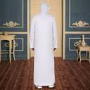 Step into a new era of casual sophistication with the White Hoodie Thobe by AL-AMMAAR—crafted for the modern man who values comfort without sacrificing style. Perfect for laid-back weekends, travel, or everyday wear, this thobe blends traditional modesty with contemporary streetwear elements. Made from high-quality TR (Terylene Rayon) fabric, it offers a lightweight and breathable experience that ensures ease of movement and all-day comfort. The clean white base is tastefully accented with a striking blue and black chest strap, while the attached hoodie and zip closure bring a sporty, urban vibe to the classic ankle-length silhouette. Designed with full sleeves and a collarless neckline, it maintains a minimalist elegance that’s effortlessly stylish. Practical features like two side pockets add convenience, making it as functional as it is fashionable. From the renowned brand AL-AMMAAR, known for its modern take on Islamic wear, this hoodie thobe is a versatile staple that seamlessly fits into any casual or travel wardrobe.