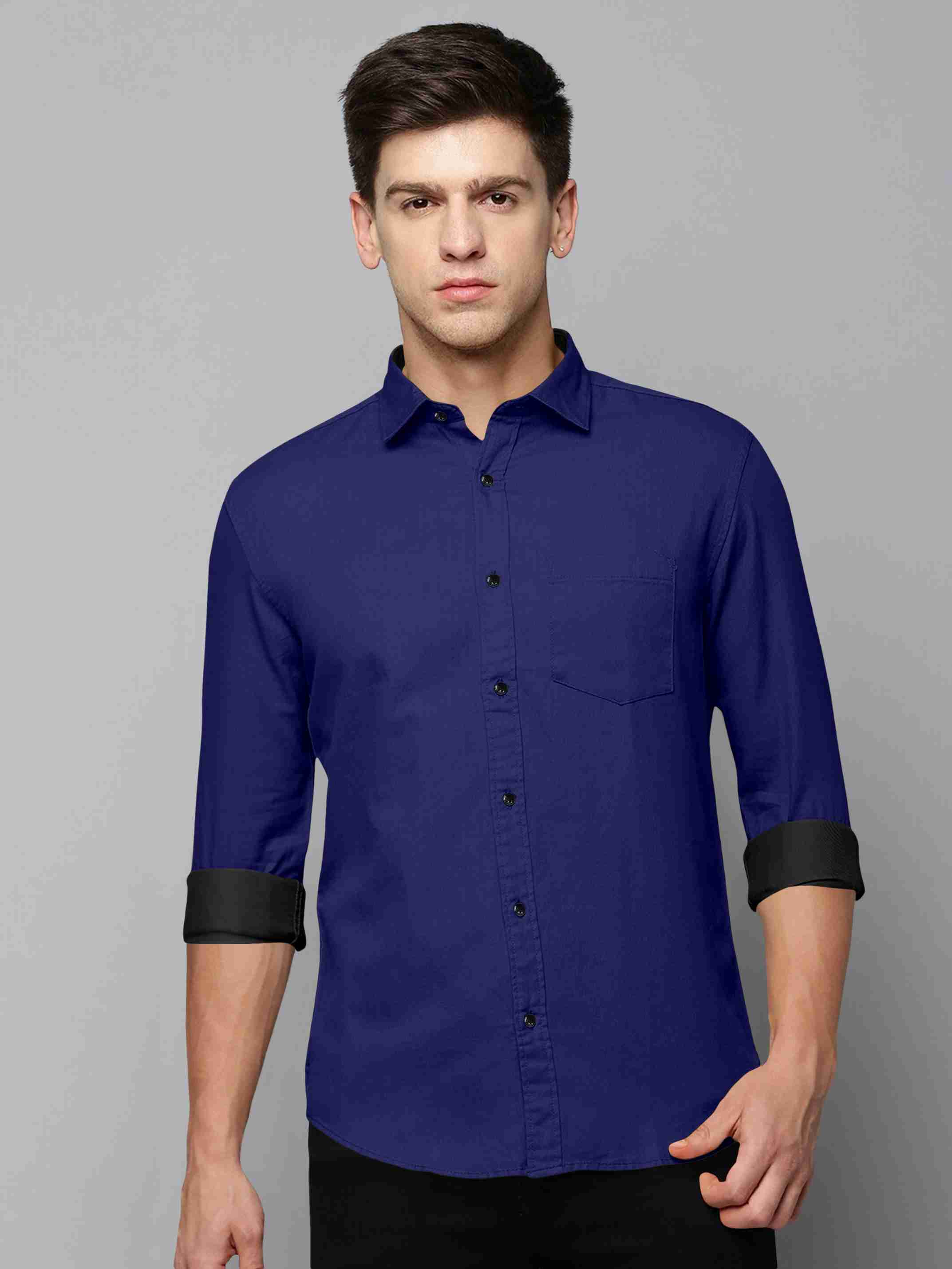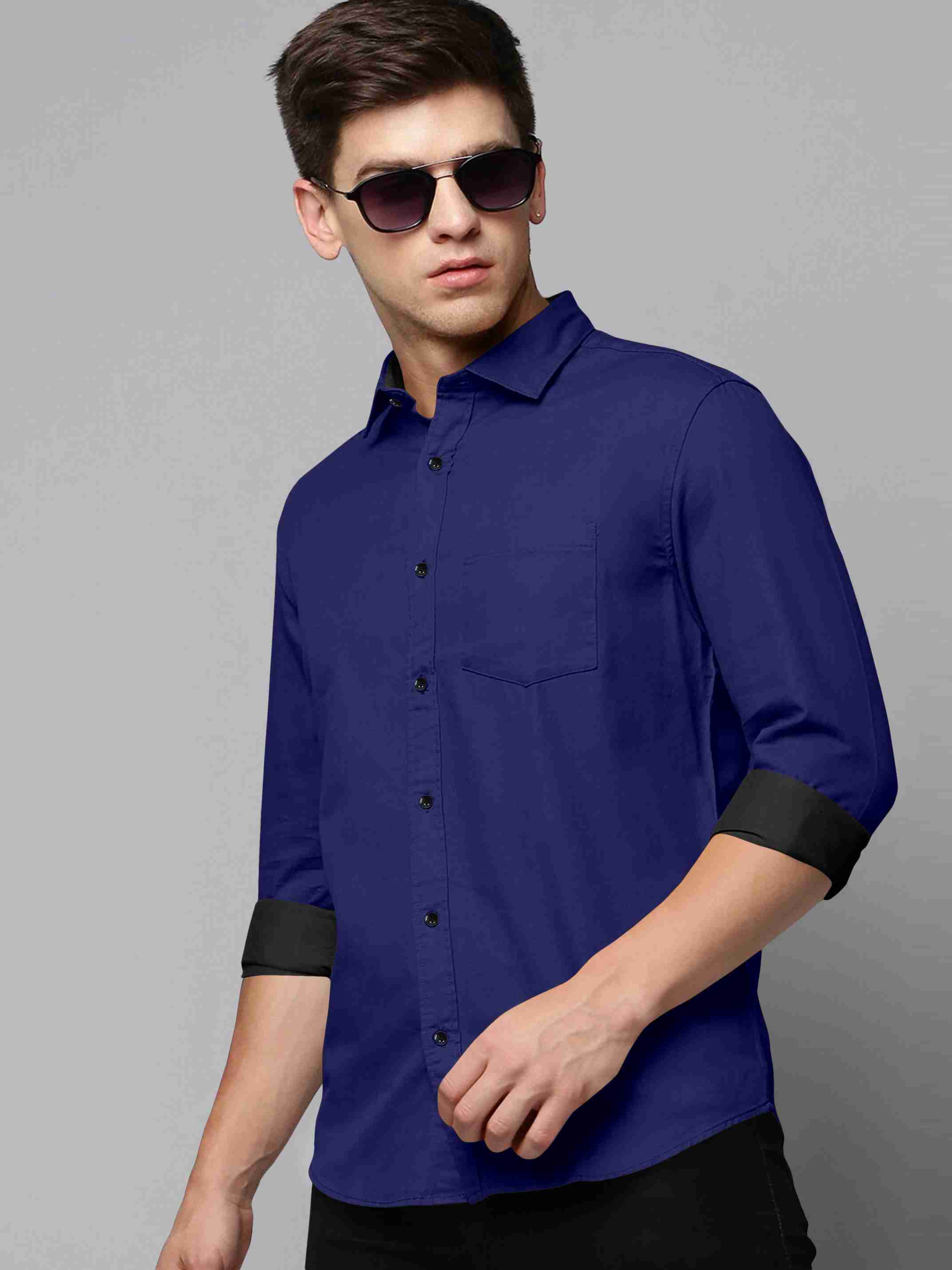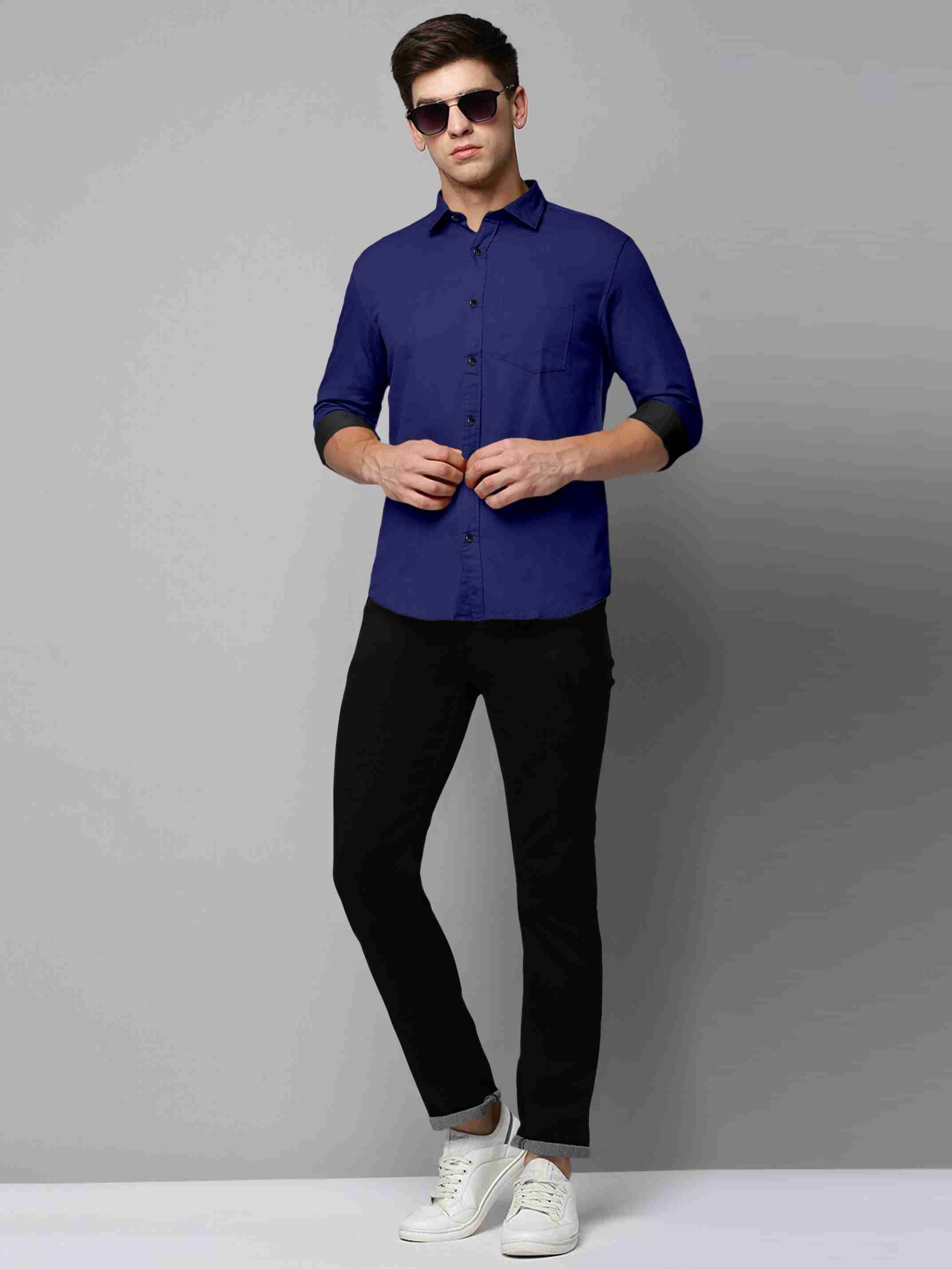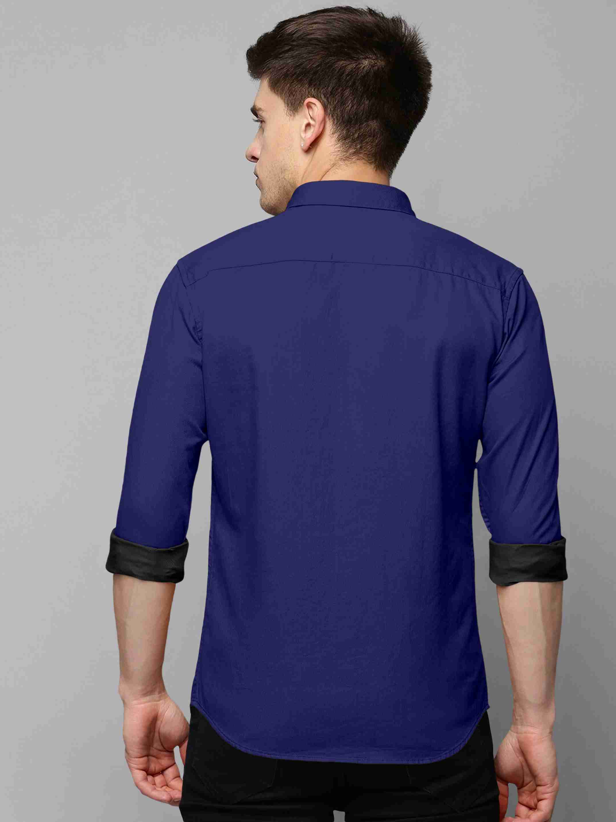 Men Slim Fit Solid Spread Collar Casual Shirt