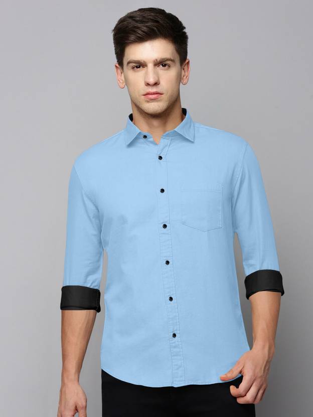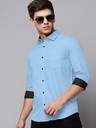VIVESCO Men Solid Casual Light Blue Shirt