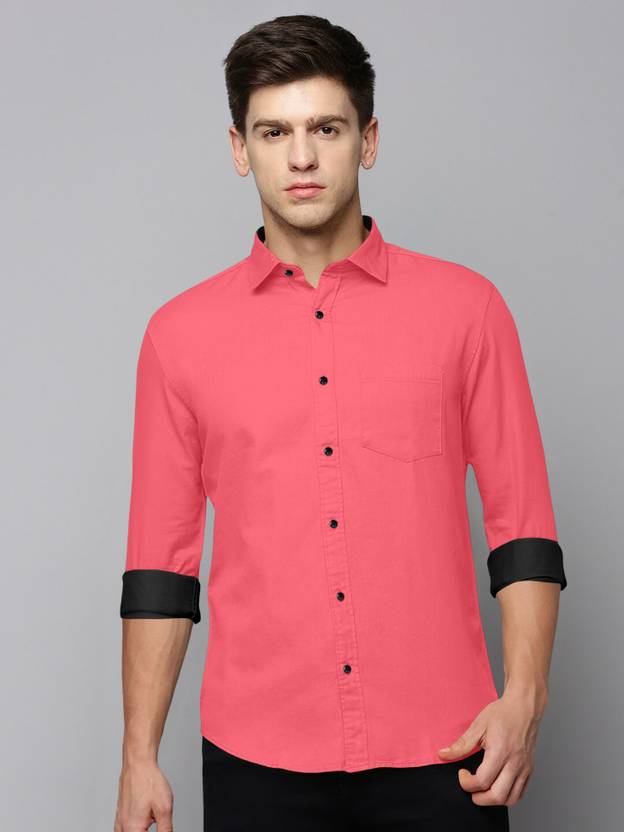 ALAIN CHIC Men Solid Casual Pink Shirt