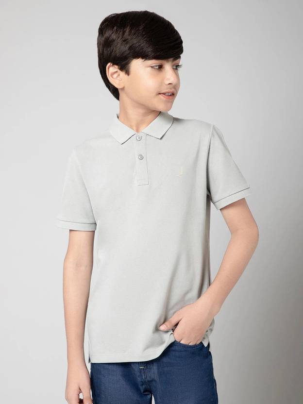 Alan Jones Boys Solid Cotton Blend Regular T Shirt (Grey, Pack of 1)