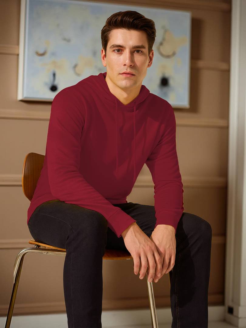 Alan Jones Men Full Sleeve Solid Hooded Sweatshirt