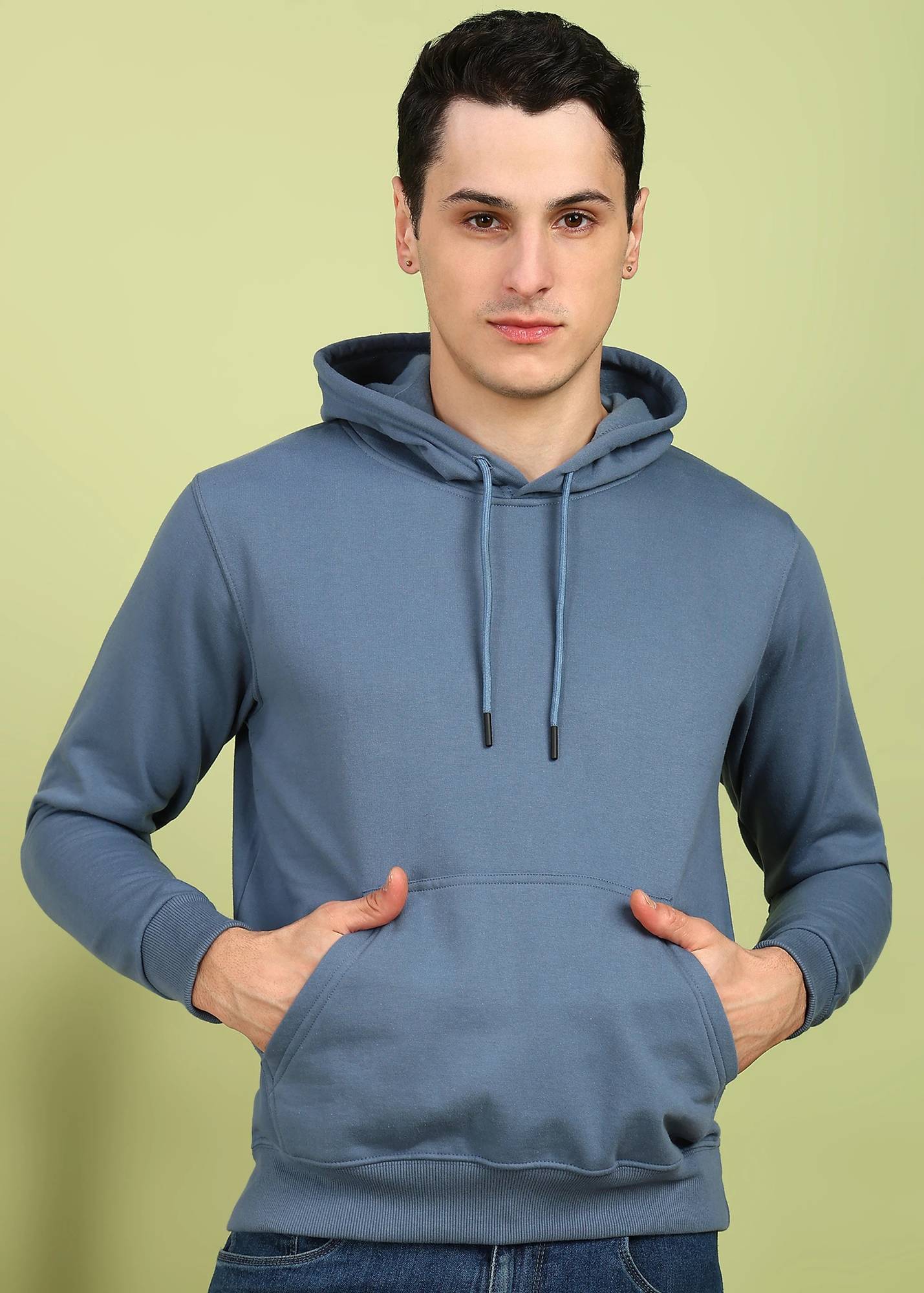 Alan Jones Men Full Sleeve Solid Hooded Sweatshirt