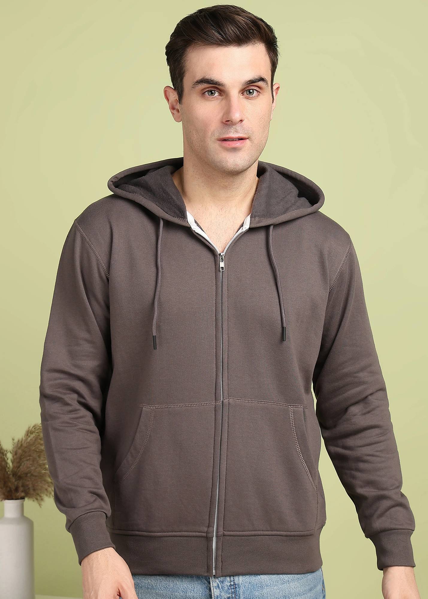 Alan Jones Men Full Sleeve Solid Hooded Sweatshirt
