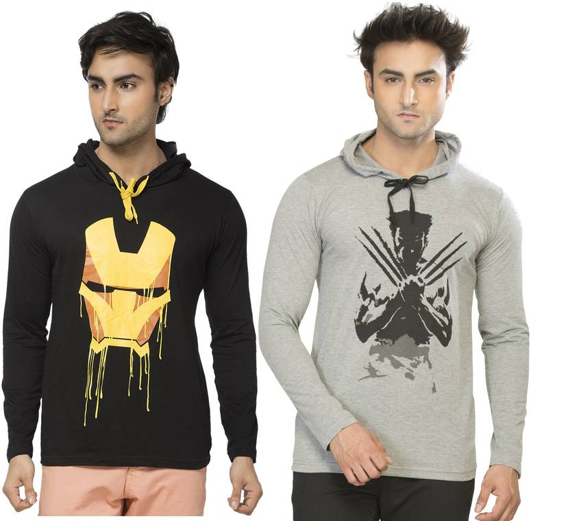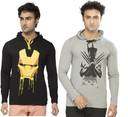 Alan Jones Pack of 2 Men Printed Hooded Neck Cotton Blend Black, Grey T-Shirt
