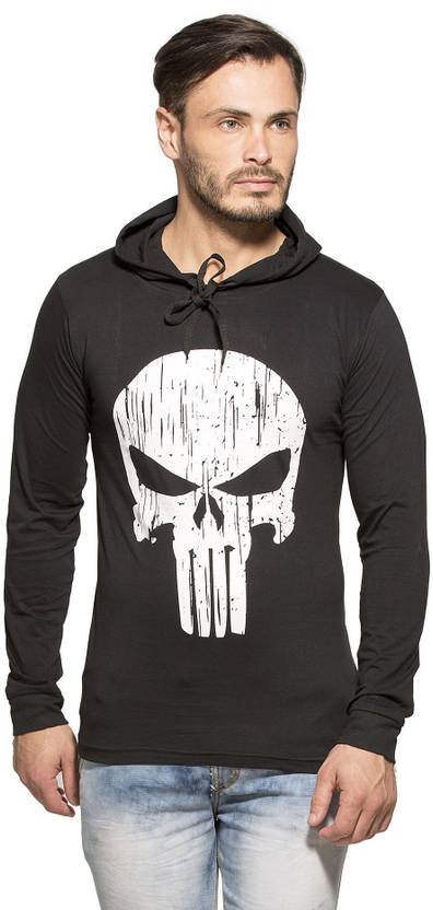 Alan Jones Men Printed Hooded Neck Cotton Blend Black T-Shirt