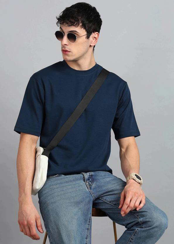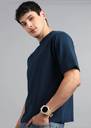 Alan Jones Solid Men Crew Neck Blue T-Shirt