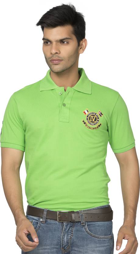 Alan Jones Men Solid Polo Neck Cotton Blend Light Green T-Shirt