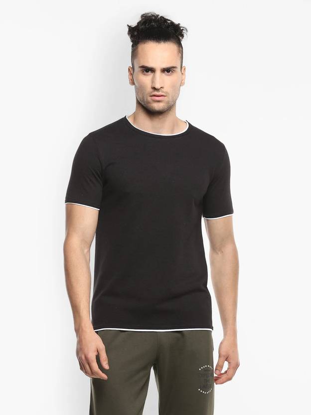Alan Jones Solid Men Round Neck Black T-Shirt