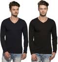 Alan Jones Pack of 2 Men Solid V Neck Cotton Blend Brown T-Shirt