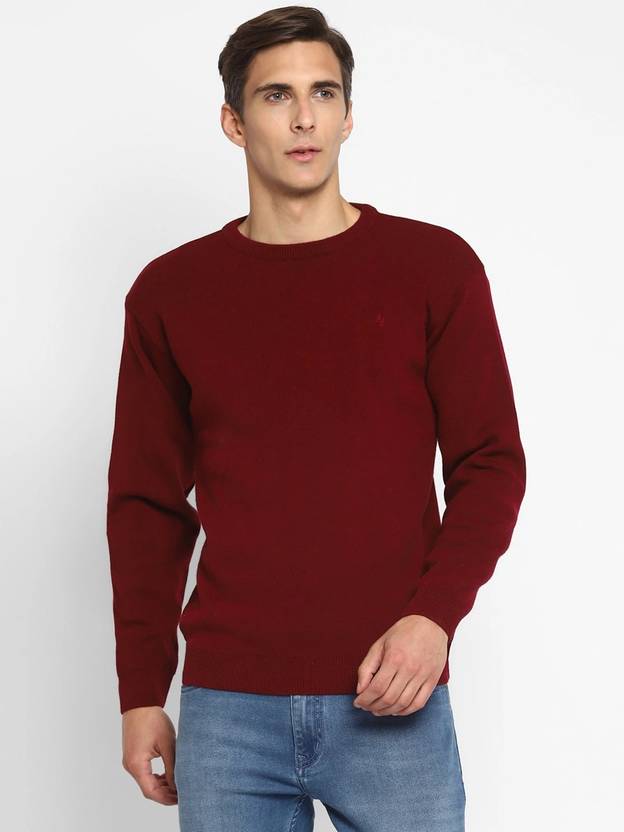 Alan Jones Solid Round Neck Casual Men Maroon Sweater