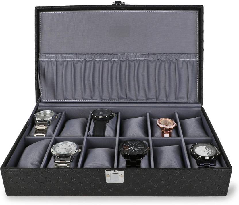 ALAWO Watch Box Organizer Holder for Men & Women 12 slots of watches Black and Gray Watch Box (Black, Holds 12 Watches)