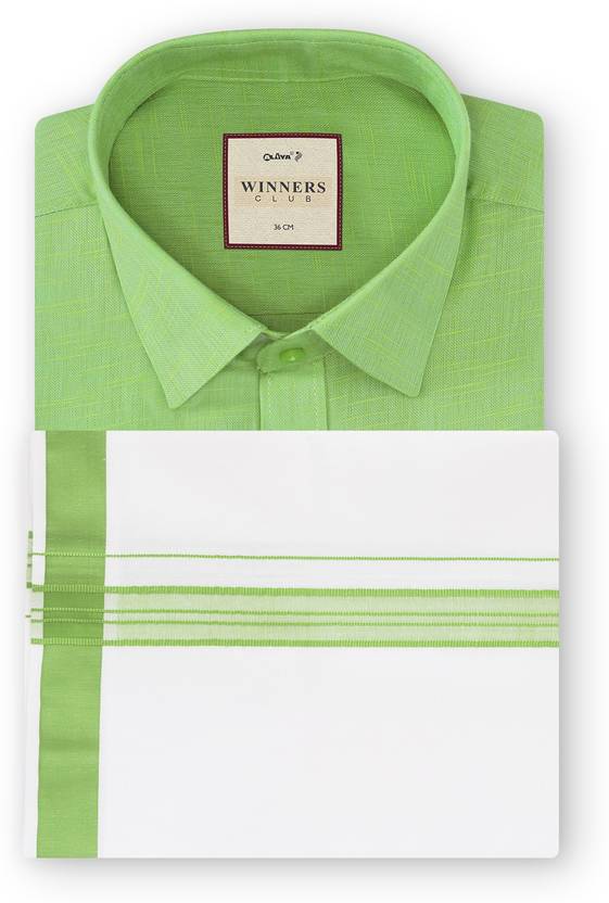Alaya Mens Cotton solid shirt and border dhoti set