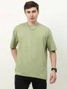Albatross Men Solid Round Neck Pure Cotton Light Green T-Shirt