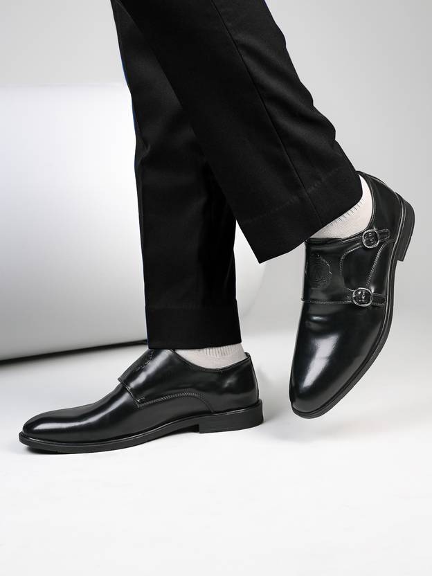 ALBERTO TORRESI Burnish Finish Double Monk Strap For Men (Black , 8)