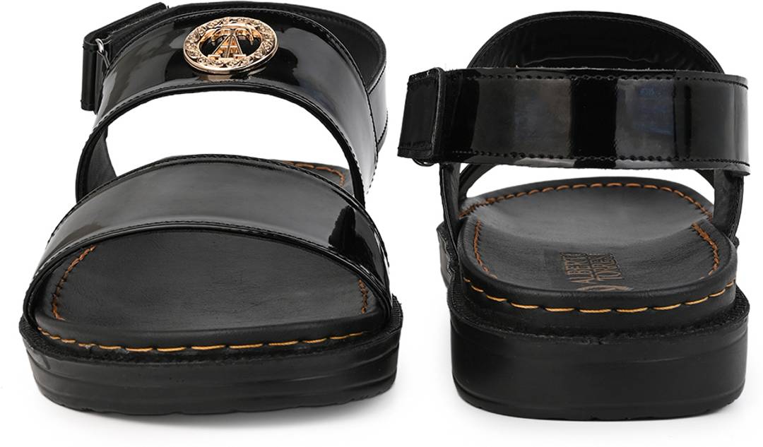 Elevate your footwear collection with these sophisticated sandals from Alberto Torresi. Designed for the modern man who values both style and comfort, these sandals feature a high-shine black patent leather finish that adds a touch of luxury to any outfit.