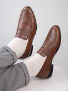 Introducing NANCY : Genuine Leather Penny Loafers with thin TPU soles for that sleek look. Made of evergreen, rich, grained leather. Suitable for creating a statement everywhere you goFormals with elegant styling and first-in-class sneaker-like comfort footbeds. These loafers have a compact look which make them very much in fashion. 8mm compressed foam footbeds for all-day comfort and leg support. Pair these with your office attire, party wear, or even your shorts. Wear it with half-sk socks. Polish regularly.