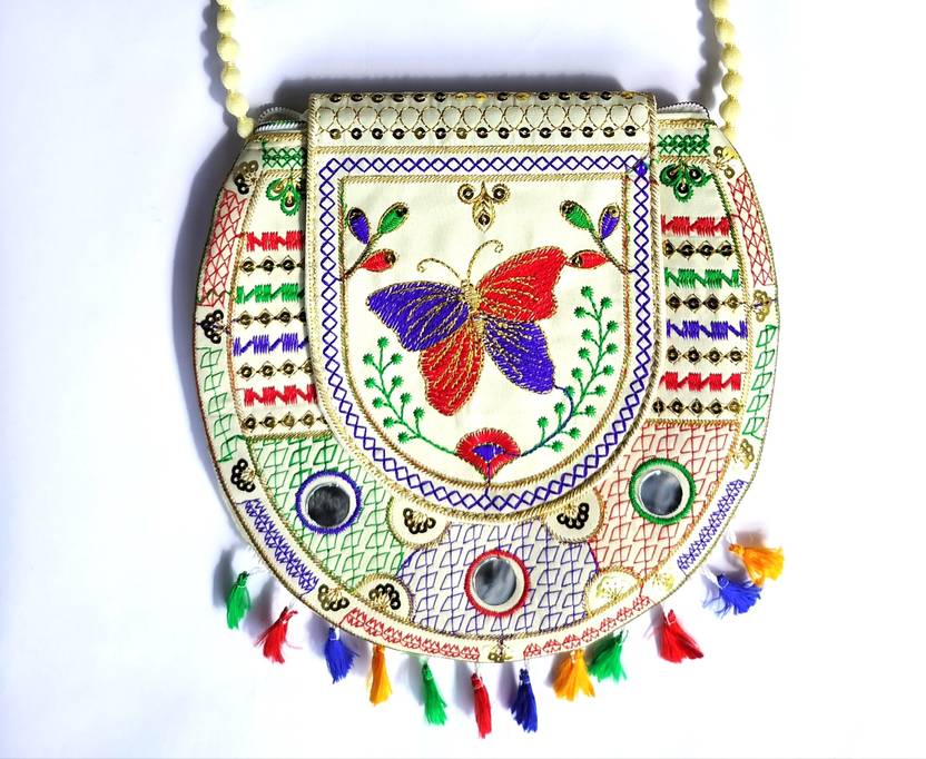 Alberts White Sling Bag Designer Embroidered Traditional Purse Clutch For Women