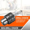 Converts SDS drill to standard chuck functionality, Compatible with SDS-plus and SDS-max rotary hammers, Made from hardened, rust-resistant alloy steel, Provides strong grip for stable drilling performance