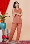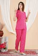 ALECIA FASTION Women Printed Pink Shirt & Pyjama set