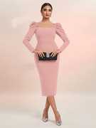 Alekya Dresses Are An Ever-Classic Apparel Option For Women. Cloth Have Power To Make A Women Fashionable, Elegant, And Highly Versatile Forms . In Womens Clothing You Can Pull Off On Many Different Occasions With Different Style . Explore New Style With Selvia You Can Find The Right Style Of Dress You Are Looking For From The Wide Selection Offered Here,A Pink Solid Puff Full Sleeve Party Knitted Bodycon Type Wrap Dress Has A square neck That Can Be Highly Stylish Options You Can Flaunt At Special Events. You Can Wear Them To Parties, Night Outs, Or When You Are Going Out For Dinner With Friends.