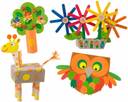 ALEX Toys Craft Eco Crafts lets you create 20 easy crafts with recycled stickers, papers and pencils. Just layer and stick to make puppets, animals and jewelry. Includes 428 stickers and shapes, 6 recycled colored pencils, 42 craft sticks, wooden spoons, fork and spatula, wooden buttons, 4 small wooden spoons, spools and beads, string, ribbon, glue stick, tissue papers and easy instructions. Made of recycled paperboard and soy ink. Recommended for children 6 years of age and older.