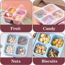 Meal Prep & Portion Control: 4 perfectly divided compartments make it easy to pack a variety of snacks, fruits, vegetables and nuts. Each compartment can hold 5.8oz of food, perfect for portion control and satisfying any size appetite. High Quality Materials: These snack containers are made of premium materials. Can be used multiple times. Cat Ear Edge Lid Design: The lid of the snack box stays an rim design that can be firmly fixed, but people can easily remove it. Each section is sealed and won't leak into the other sections! (Not suitable for liquids) Lightweight and Space-Saving: The bento boxes are stackable and can easily fit in a backpack or lunch bag. They can also be stacked in the fridge and cabinets without taking up too much space, perfect for work, parties and travelling. Microwave, Freezer & Dishwasher Safe: These snack containers are very easy to clean and hold up well in the dishwasher. Each set includes 2 different colored snack containers that are easy to distinguish.