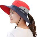 Classic style meets modern comfort ponytail sun hat. The timeless appearance with an innovative ponytail opening protects your hair from tangles. Also, the opening is subtle enough that you can easily and comfortably wear the hat in summer when you don’t feel like wearing your ponytail. UPF 50+ excellent sun protection hat to protect your face, ears and neck from sun and UV rays. High quality materials and breathable design make you feel very comfortable and cool. Great women's gardening hat with net mesh fabric allow good air circulation and keep you cool in outdoors. Adjustable chin cord holds hat in place even in windy conditions for beach, pool, park, fishing, hiking, camping, traveling, hunting, gardening or any outdoor sports and activities. Packable and super convenient to carry, and absolutely save lots of space. Women fishing hat with two snap buttons can be worn as a cowboy hat. You can wear this stylish hat to everywhere you want in the summer, and you will become the focus of attention.