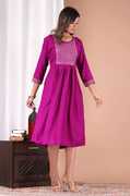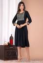 Featuring an intricate embroidered pattern, this women’s A-line dress captures attention with its timeless elegance. The embroidery, meticulously crafted, adorns the fabric, creating a harmonious fusion of tradition and modernity. Also, the detailed patterns lend a touch of sophistication to this ensemble, making it a standout piece.