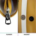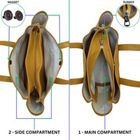 Featuring soft, easy-to-carry handles, this tote bag ensures maximum comfort throughout the day. The handles are designed to sit gently on your shoulder or rest easily in your hand without causing strain. And, equipped with a magnetic snap button and zipper closure, this bag helps keep your items securely enclosed. The zipper closure ensures the main compartment stays shut during travel, while the magnetic snap provides quick access when needed. This combination adds a layer of functionality and peace of mind for users carrying essential items.
