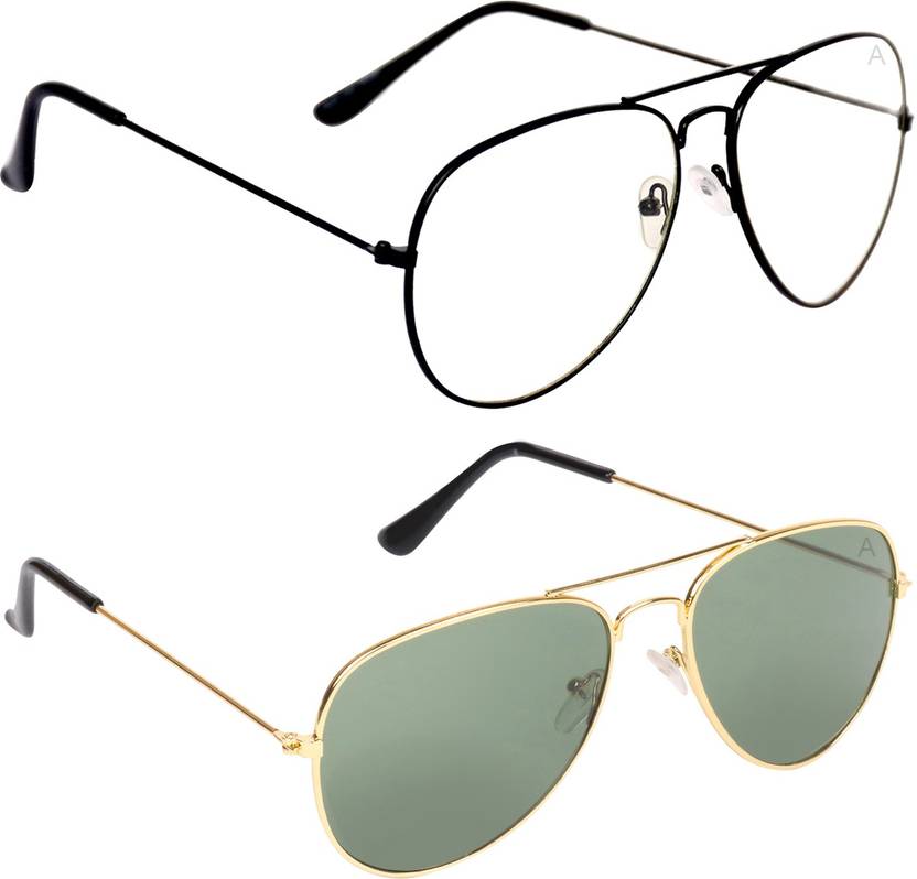Aligatorr Aviator Sunglasses (For Men & Women, Clear, Green)