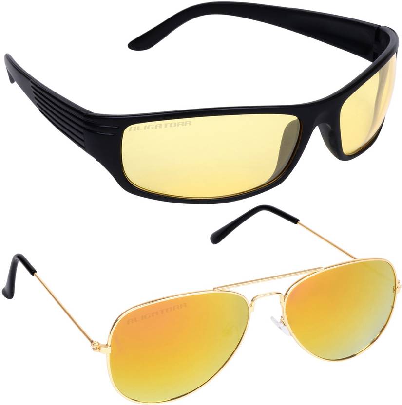 Aligatorr Aviator, Wrap-around Sunglasses (For Men, Golden, Yellow)