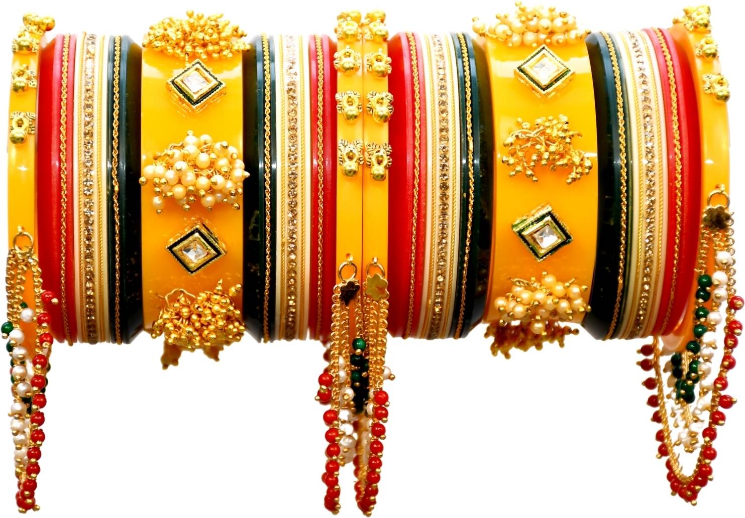 Latest New Fashion Jewellery Gold Plated Multi Colour Pearls Traditional Rajwadi Stylish Fancy Designer Acrylic Bridal Dulhan Punjabi Wedding Choora Chuda Bangle Set for Girl And Women